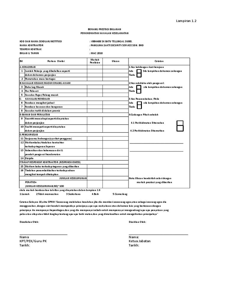 Borang Prestasi Perkhidmatan Kawalan Pdf